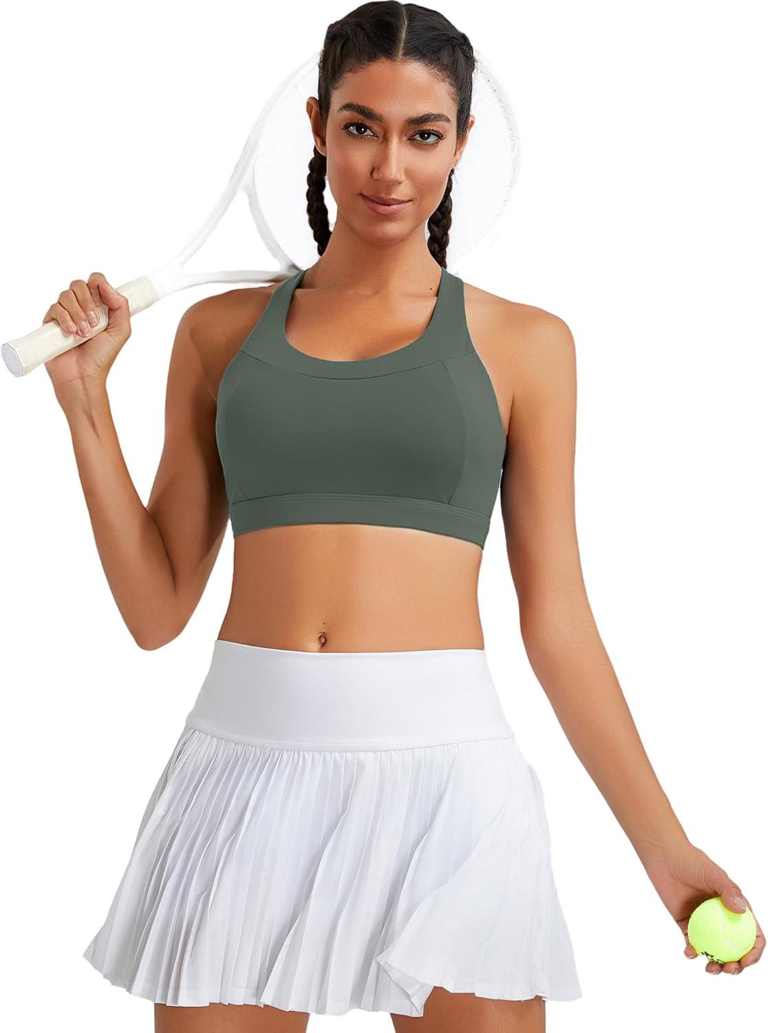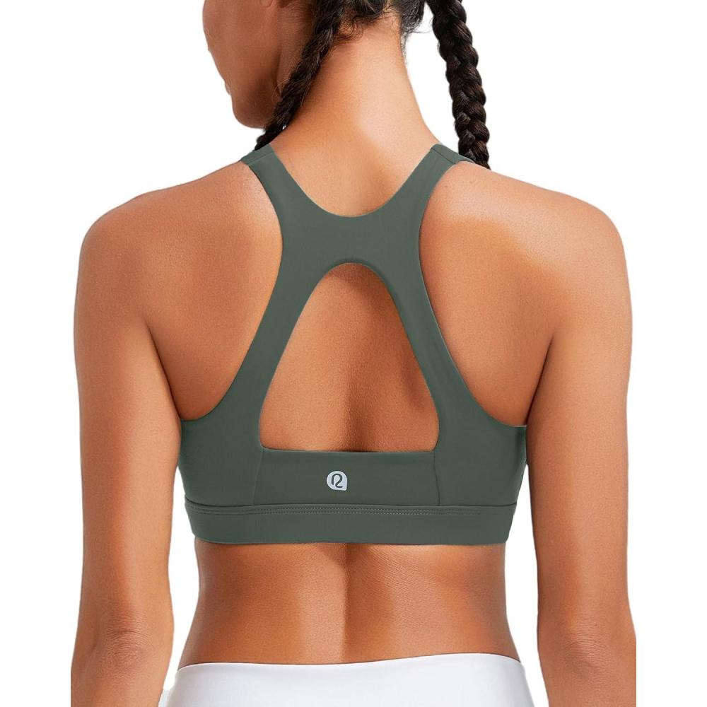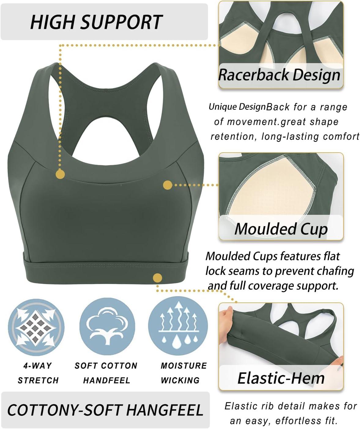 RUNNING GIRL Sports Bras for Women High Support,Racerback Molded Cup Sports Bra with Sewn in Pads(B-dark Green)