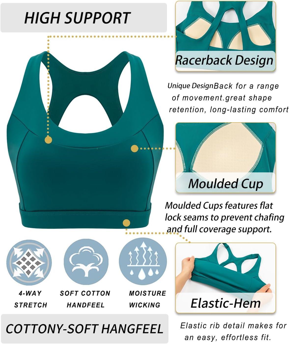 RUNNING GIRL Sports Bras for Women High Support,Racerback Molded Cup Sports Bra with Sewn in Pads(B-green)