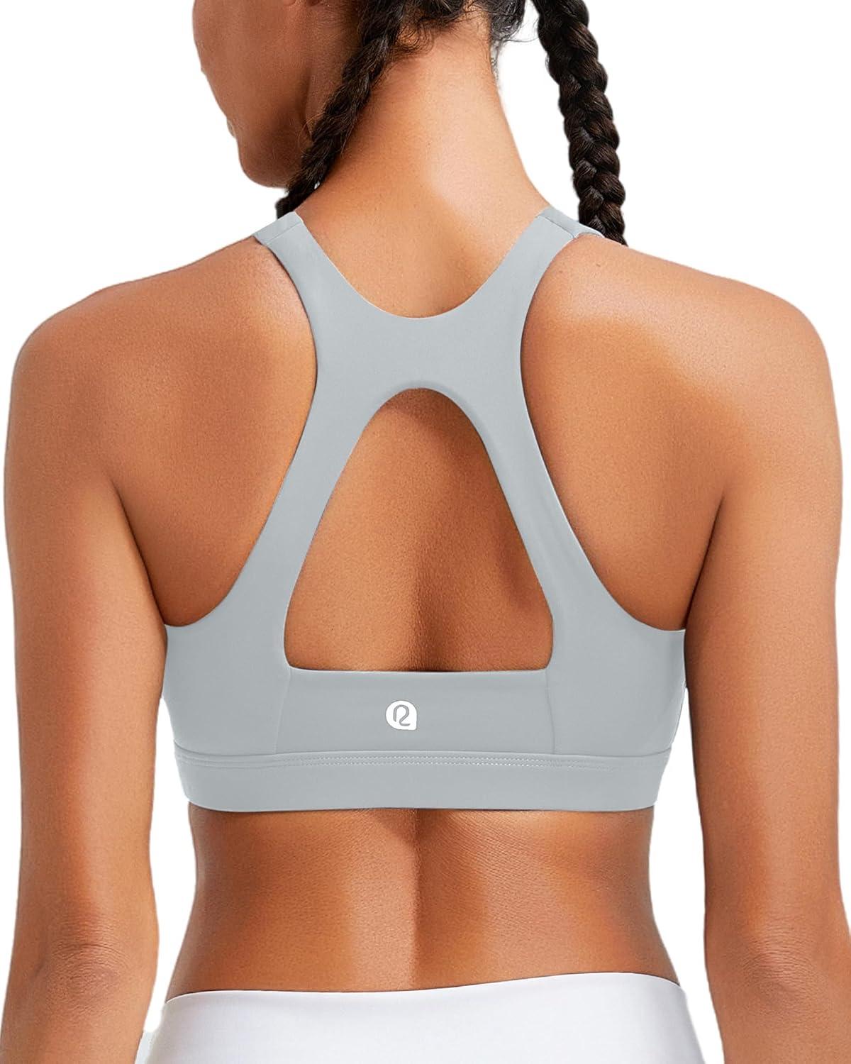 RUNNING GIRL Sports Bras for Women High Support,Racerback Molded Cup Sports Bra with Sewn in Pads(B-grey)