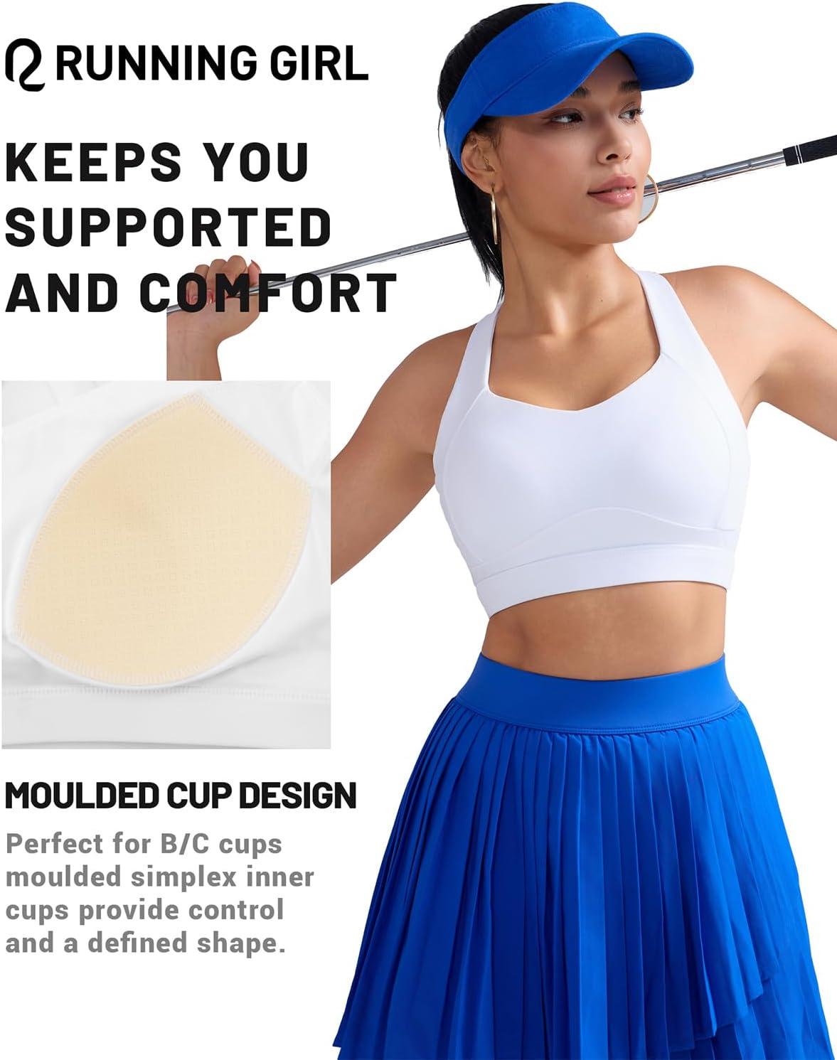 RUNNING GIRL Sports Bras for Women, Medium Support Molded Cup Women’s Sports Bras with Sewn in Pads Workout Yoga Bra(White)