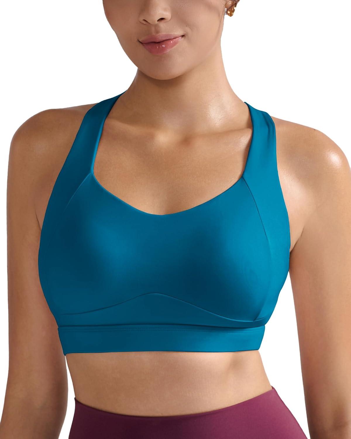 imageRUNNING GIRL Sports Bras for Women Medium Support V Neck Molded Cup Sports Bras with Sewn in Pads Racerback Running BraAzure Blue