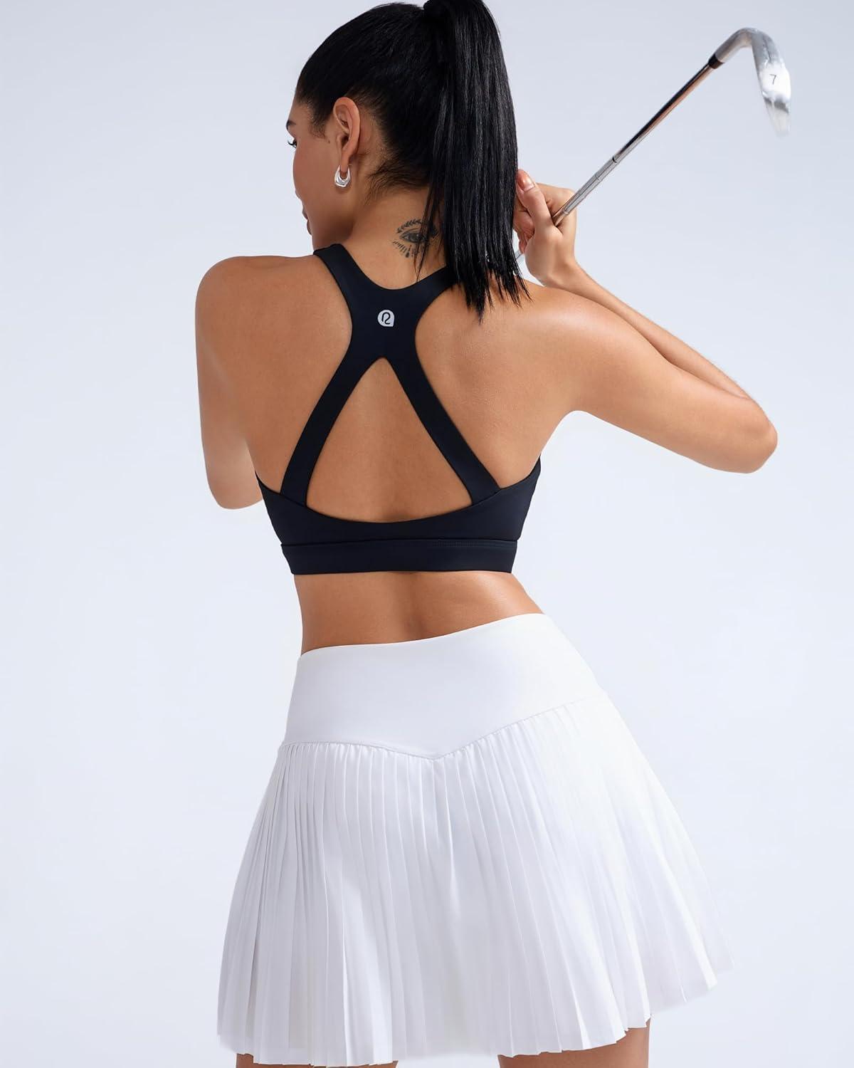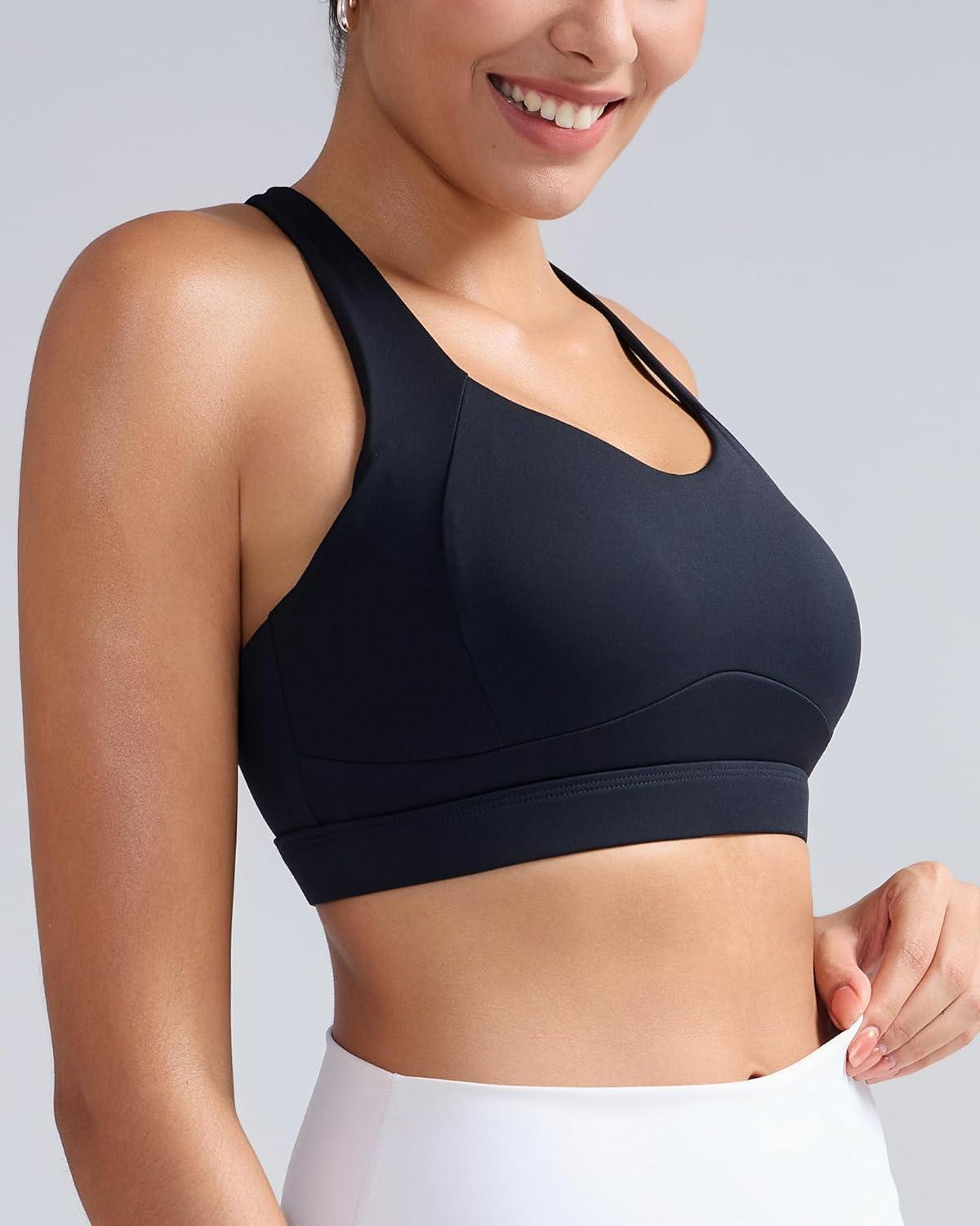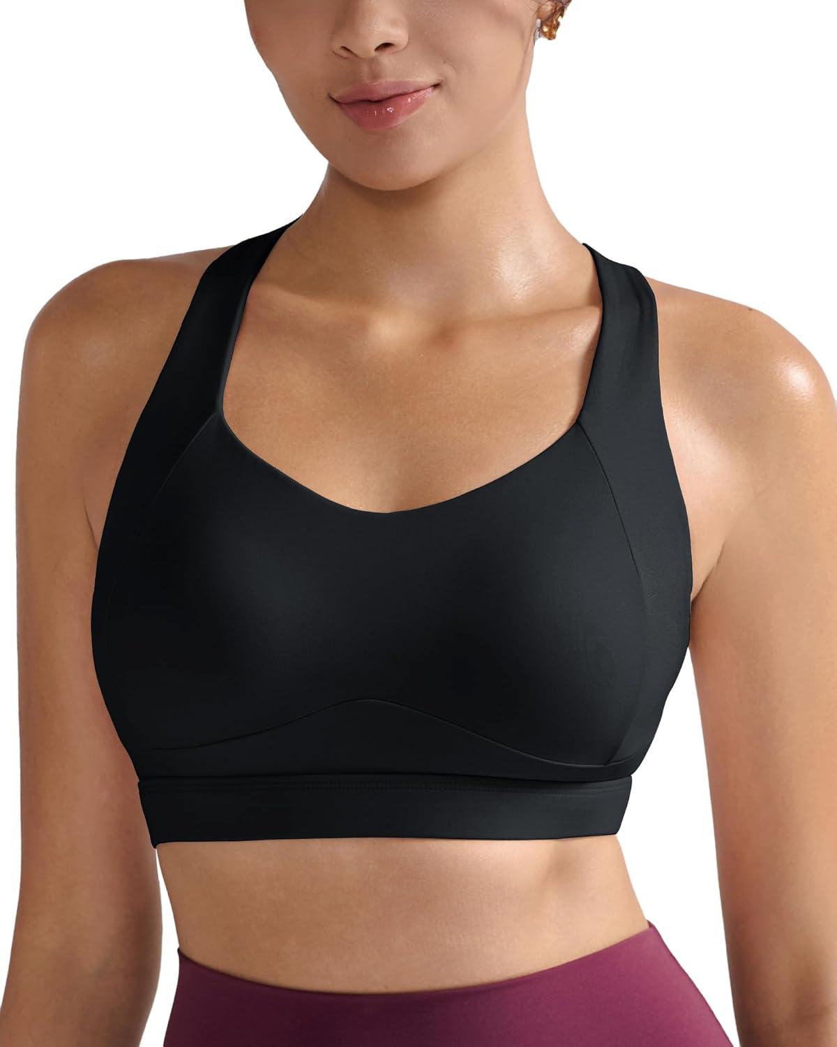 RUNNING GIRL Sports Bras for Women Medium Support V Neck Molded Cup Sports Bras with Sewn in Pads Racerback Running Bra(Jet Black)