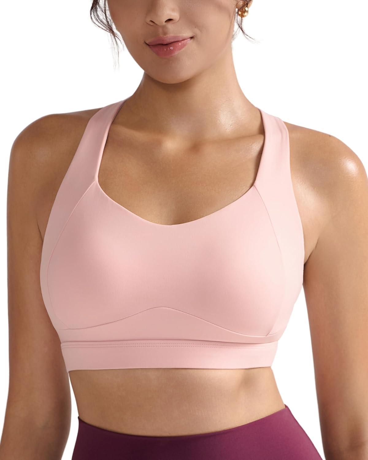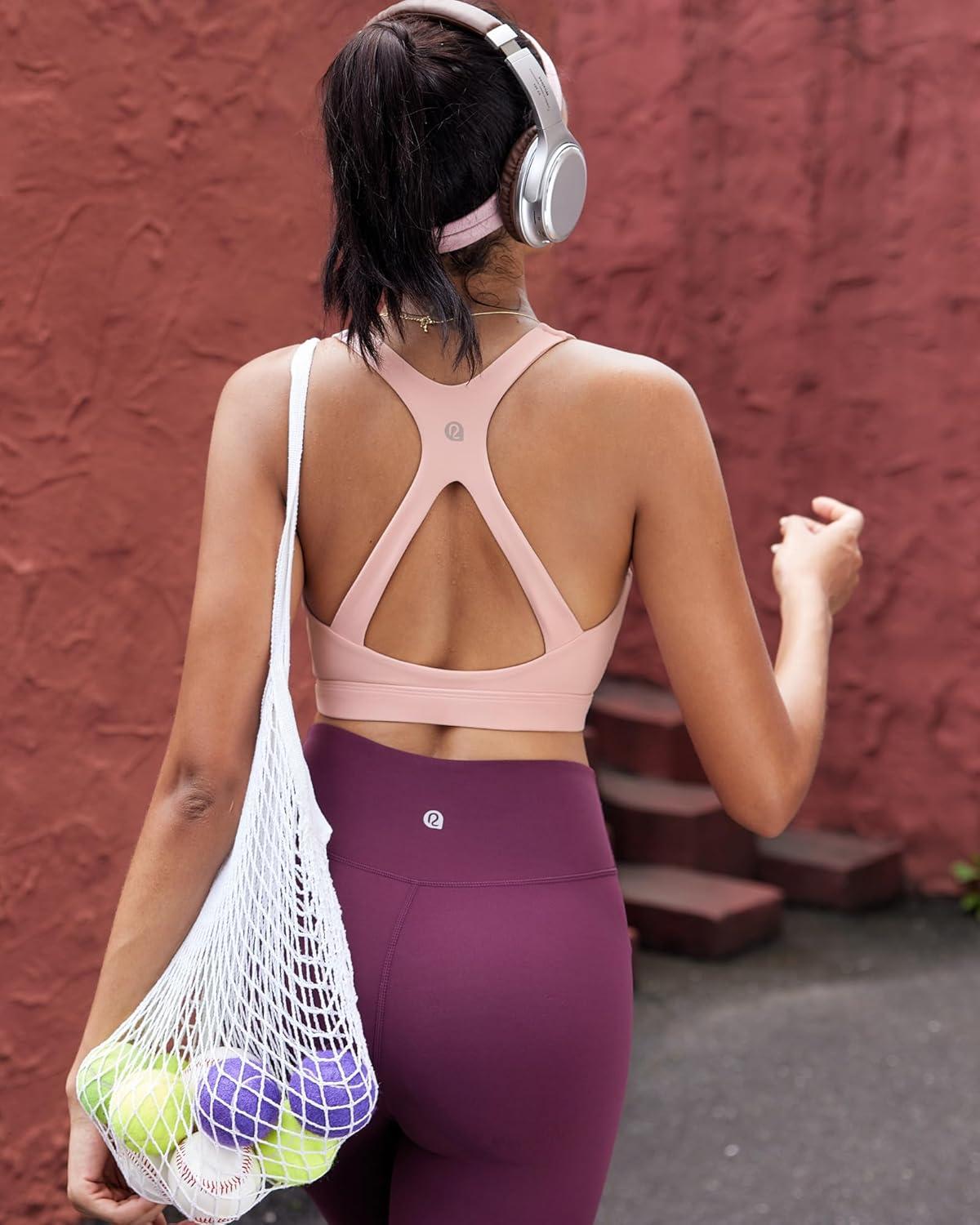 RUNNING GIRL Sports Bras for Women Medium Support V Neck Molded Cup Sports Bras with Sewn in Pads Racerback Running Bra(Pink Peony)