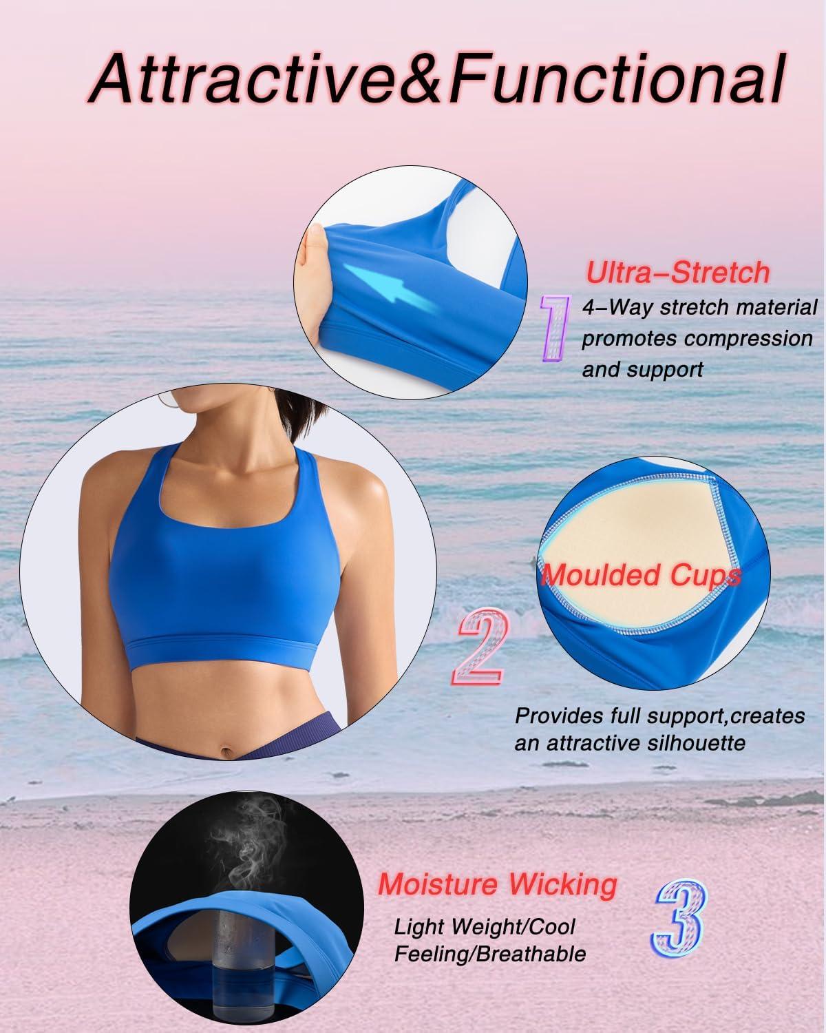 RUNNING GIRL Sports Bras for Women, Molded Cup High Impact Sports Bra Workout Bras for Women High Support Racerback(A-cerulean Blue)