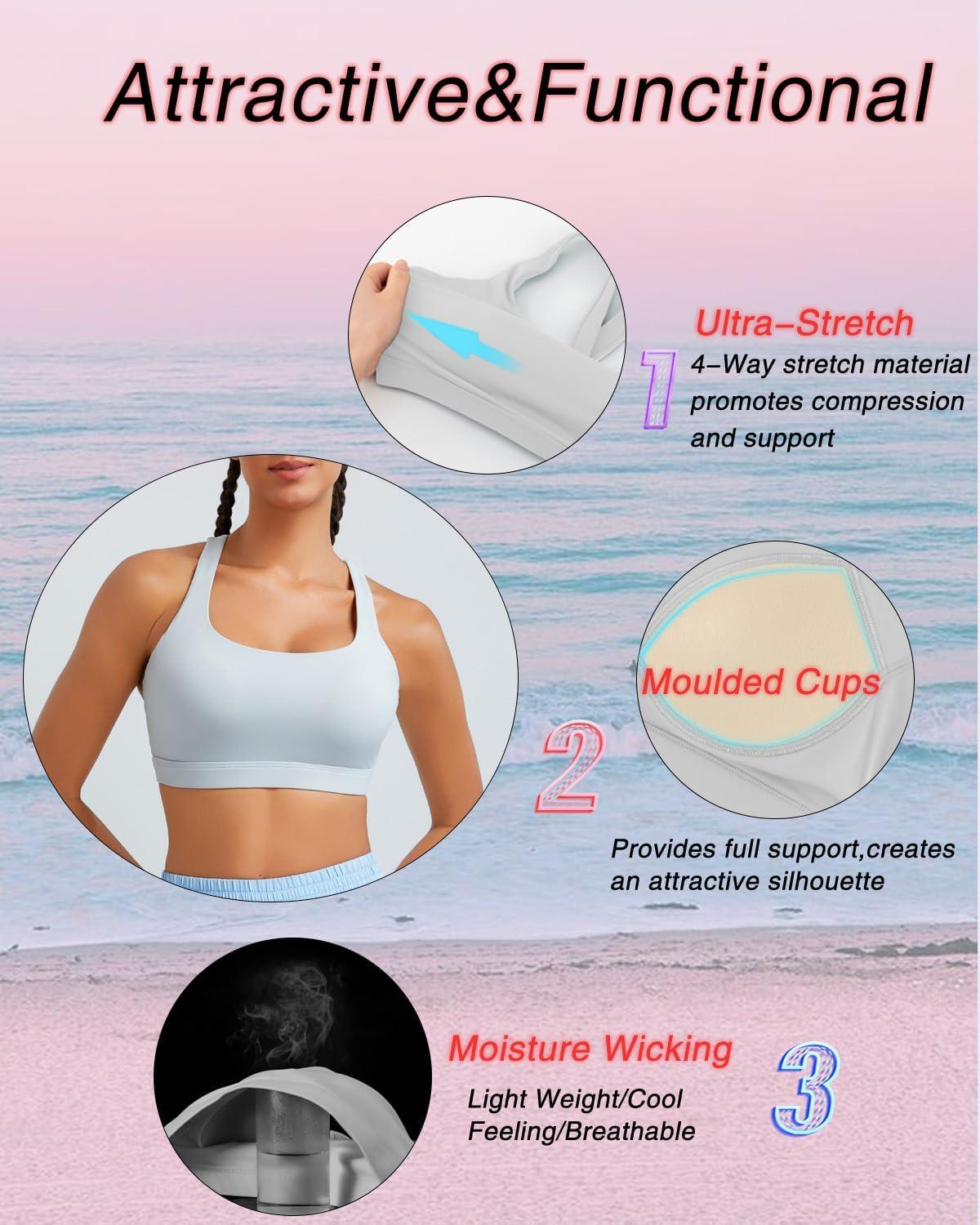 RUNNING GIRL Sports Bras for Women, Molded Cup High Impact Sports Bra Workout Bras for Women High Support Racerback(A-ice Grey)