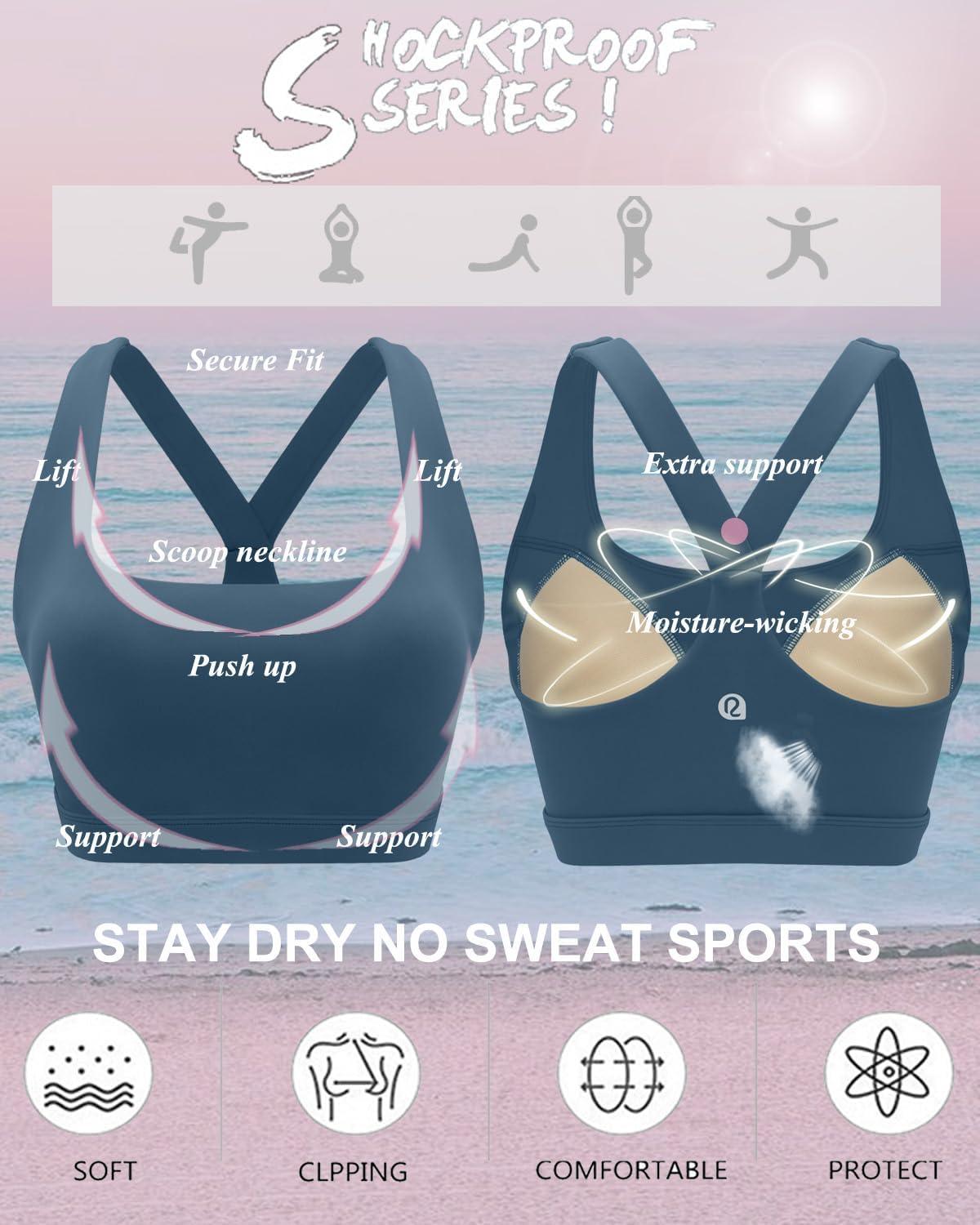 RUNNING GIRL High Impact Sports Bras for Women, High Support Running Strappy Women’s Sports Bra with Sewn in Pads(H-dark Blue)
