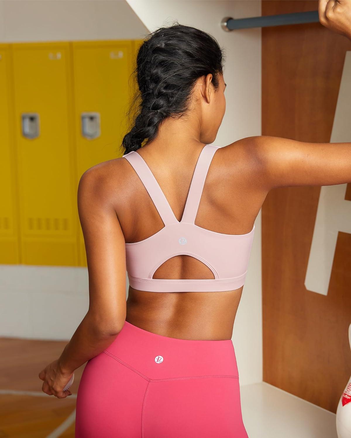 RUNNING GIRL Sports Bras for Women, Molded Cup High Impact Sports Bra Workout Bras for Women High Support Racerback(B-flush Pink)