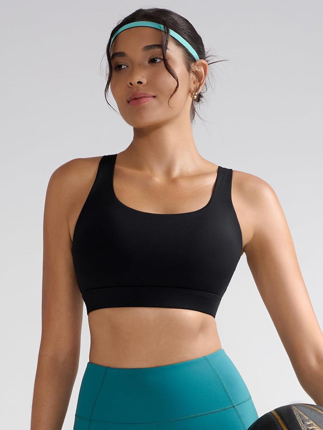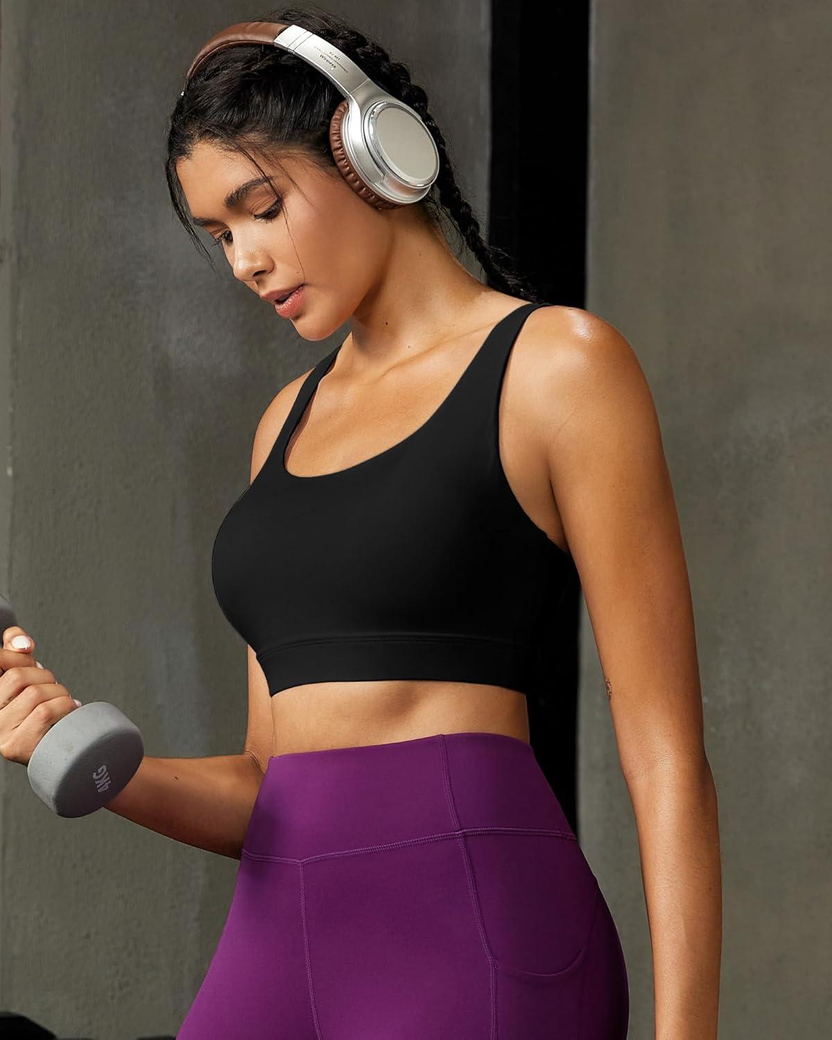 RUNNING GIRL Sports Bras for Women Padded,Scoop Neck Racerback Sports Bra Medium Support Workout Yoga Bra(Black)