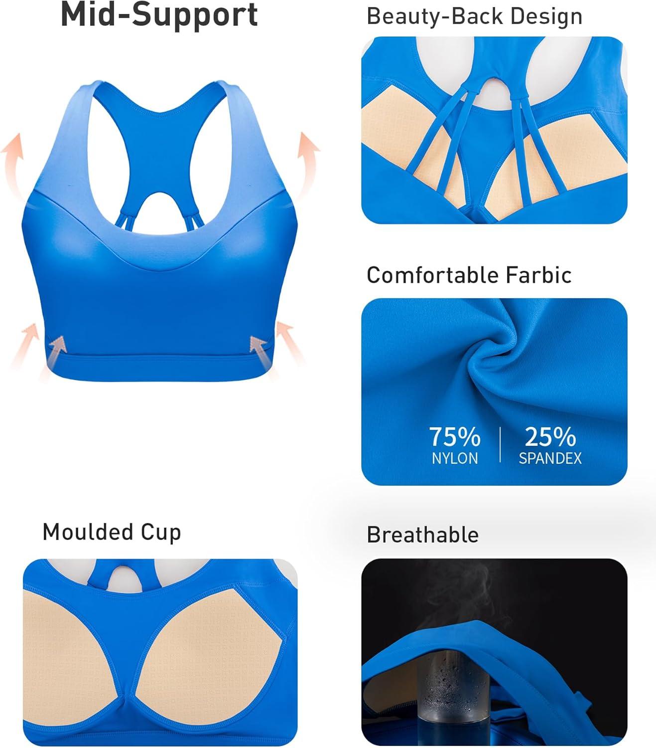 RUNNING GIRL Sports Bras for Women, Racerback Molded Cup Sports Bra with Sewn in Pads for Workout Pilate and Casual(Blue)