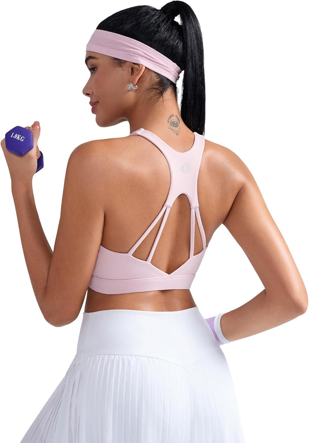 RUNNING GIRL Sports Bras for Women, Racerback Molded Cup Sports Bra with Sewn in Pads for Workout Pilate and Casual(Pink)