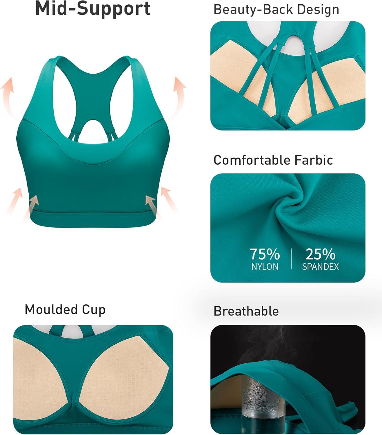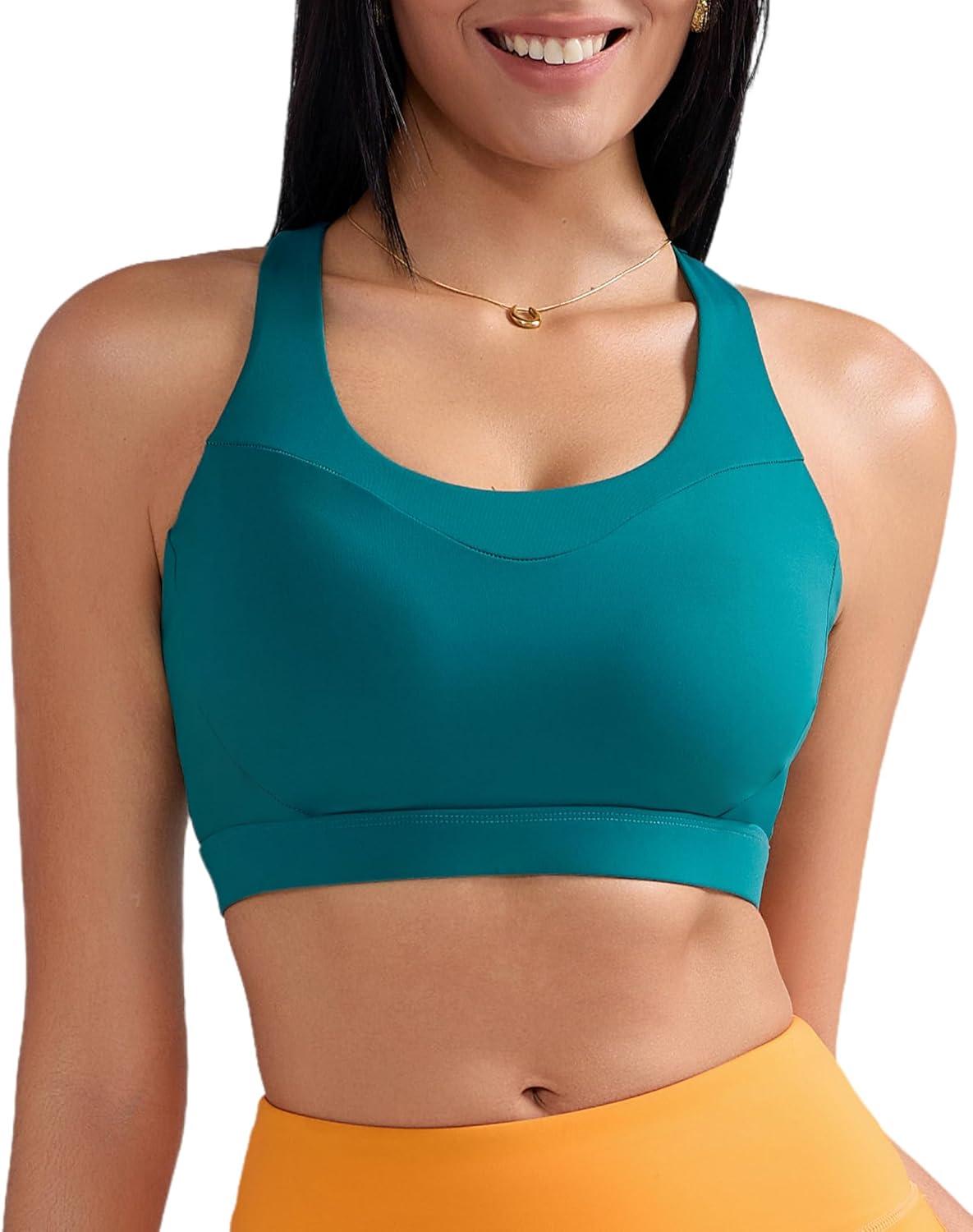 RUNNING GIRL Sports Bras for Women, Racerback Molded Cup Sports Bra with Sewn in Pads for Workout Pilate and Casual(Teal)