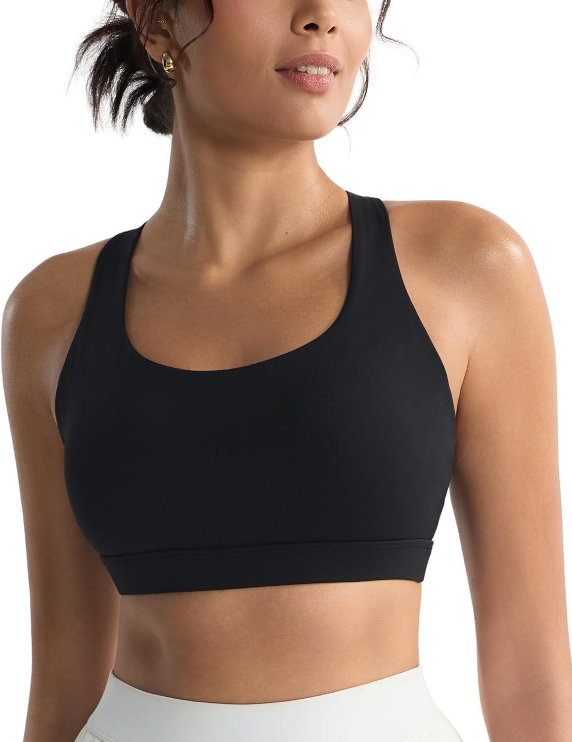 RUNNING GIRL Sports Bras for Women,High Impact Criss Cross Back Molded Cup Running Bra with Sewn in Pads(Black)