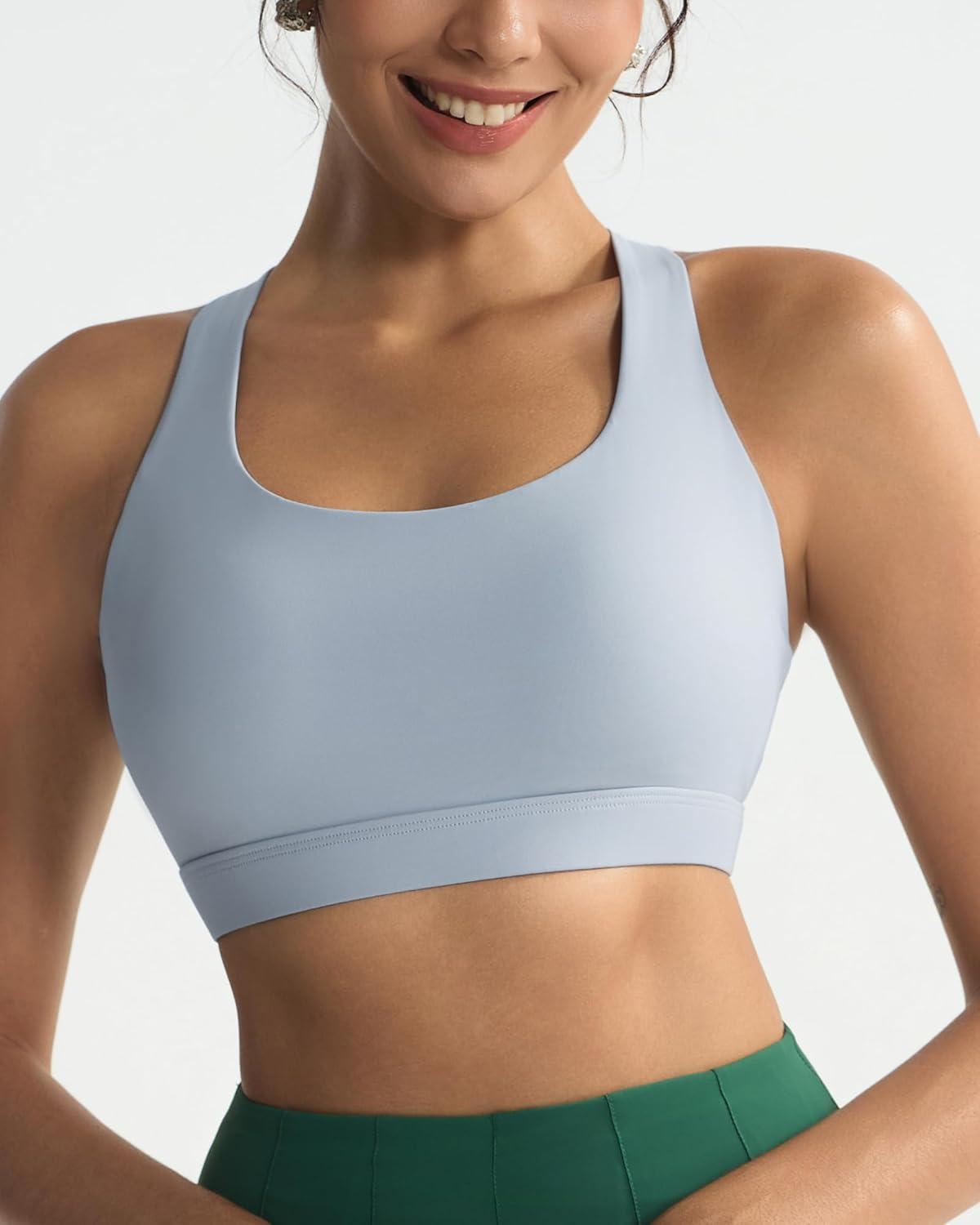 RUNNING GIRL Sports Bras for Women,High Impact Criss Cross Back Molded Cup Running Bra with Sewn in Pads(Grey)