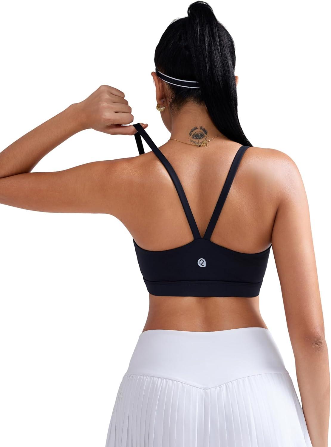 RUNNING GIRL Sports Bras for Women,Light Impact Molded Cup Strap Sports Bra with Sewn in Pads,Best for A-C Cup(Black)