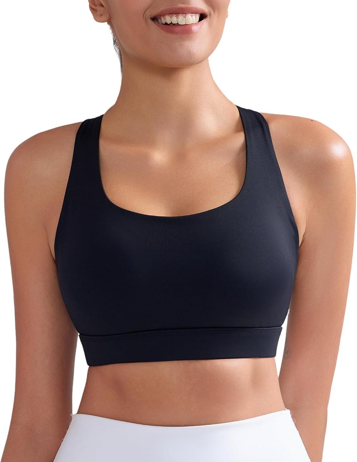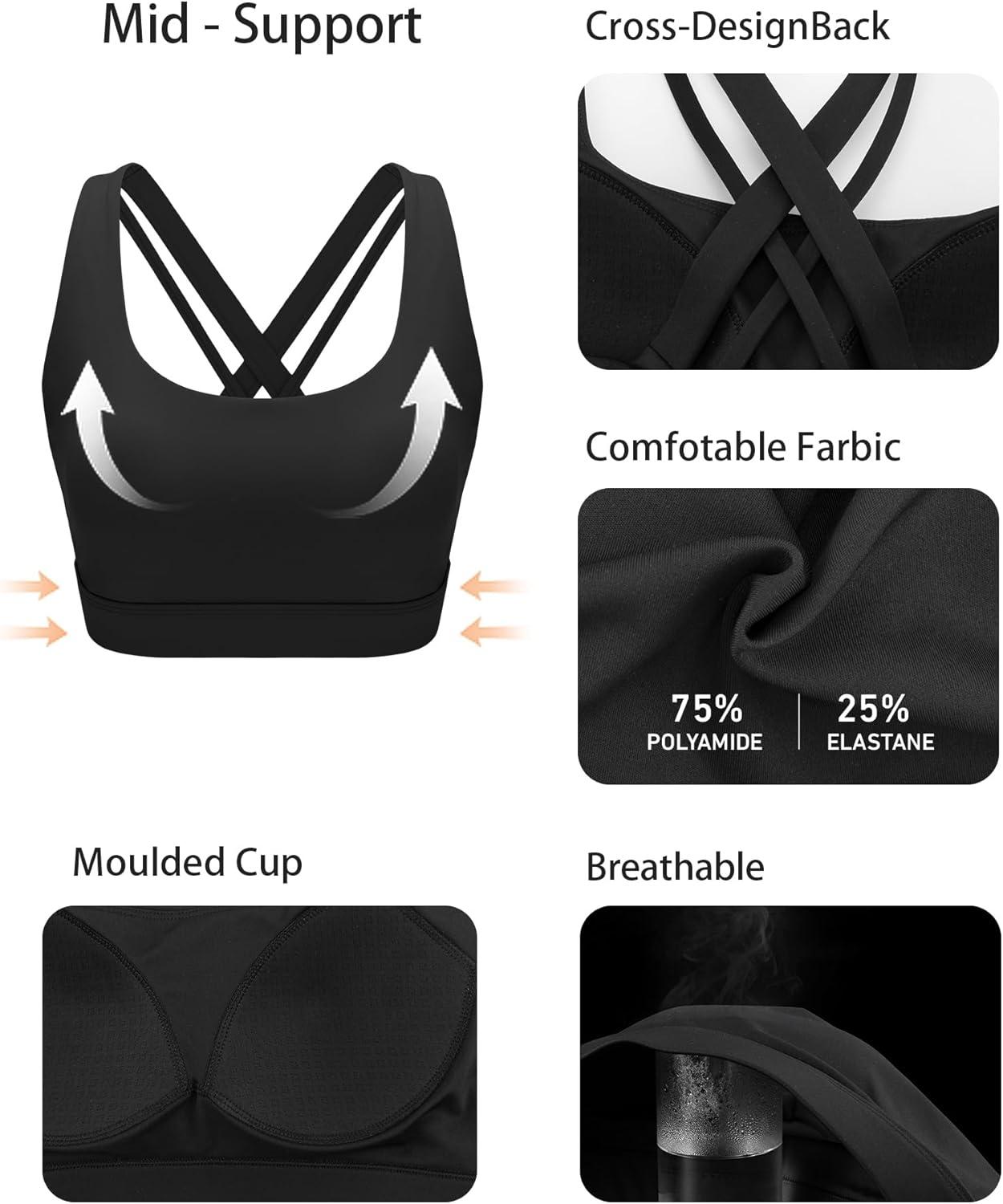 RUNNING GIRL Sports Bras for Women,Medium Impact Criss Cross Back Molded Cup Running Bra with Sewn in Pads(Black)