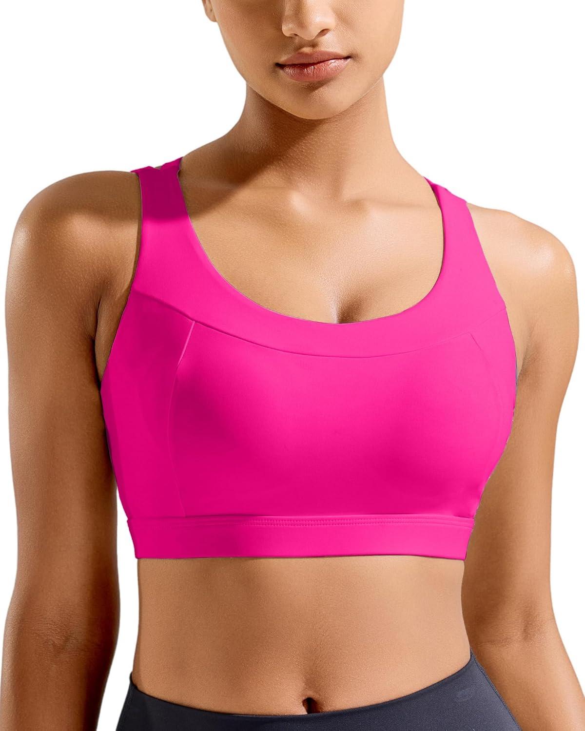 RUNNING GIRL Sports Bras for Women,Molded Cup Strappy Running High Support Sports Bras Workout Yoga Bra(Hot Pink)