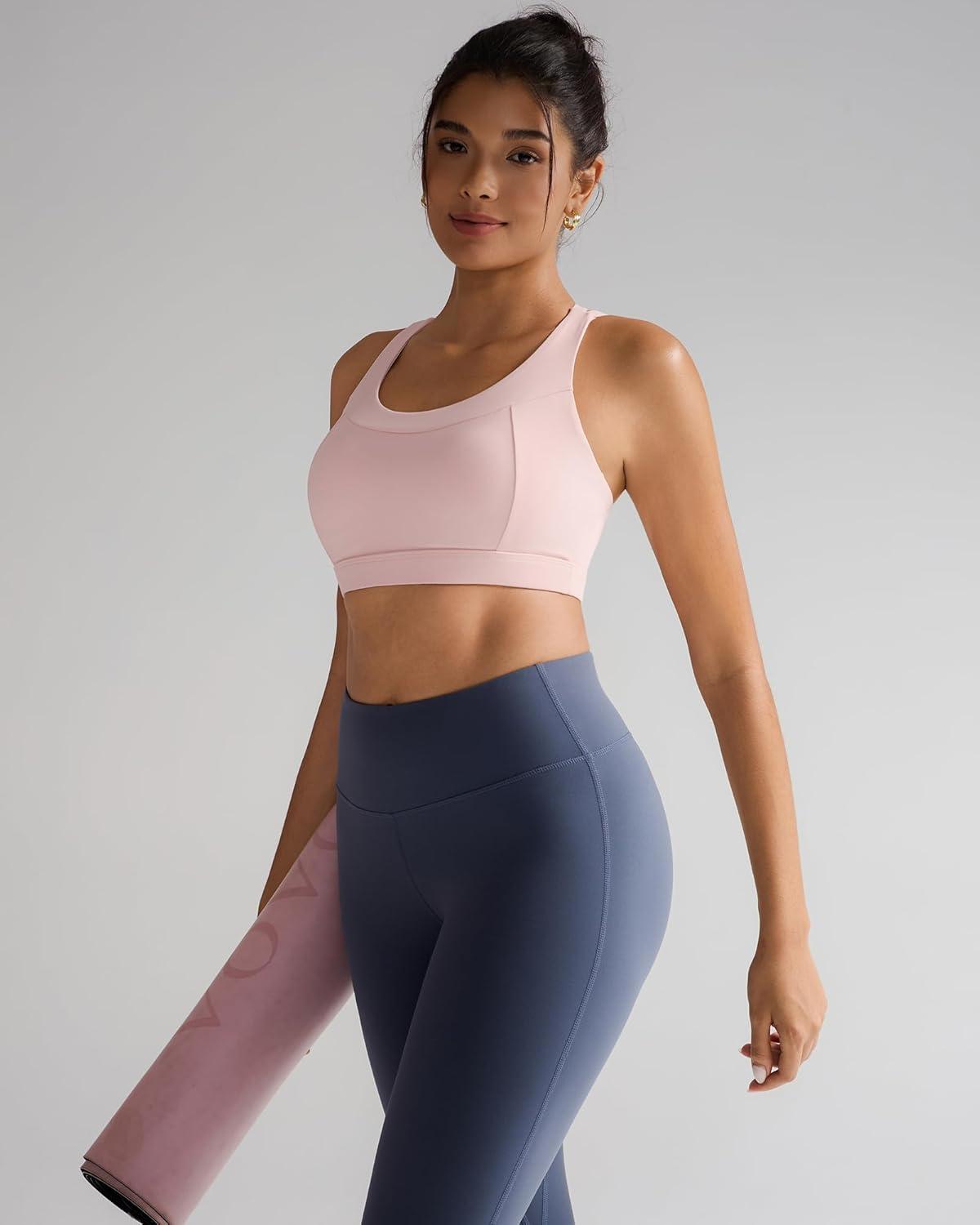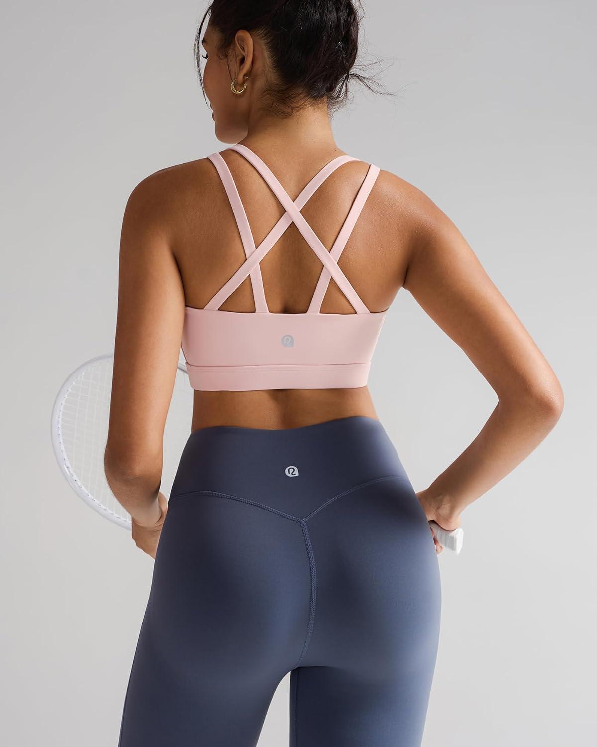 RUNNING GIRL Sports Bras for Women,Molded Cup Strappy Running High Support Sports Bras Workout Yoga Bra(Pink)