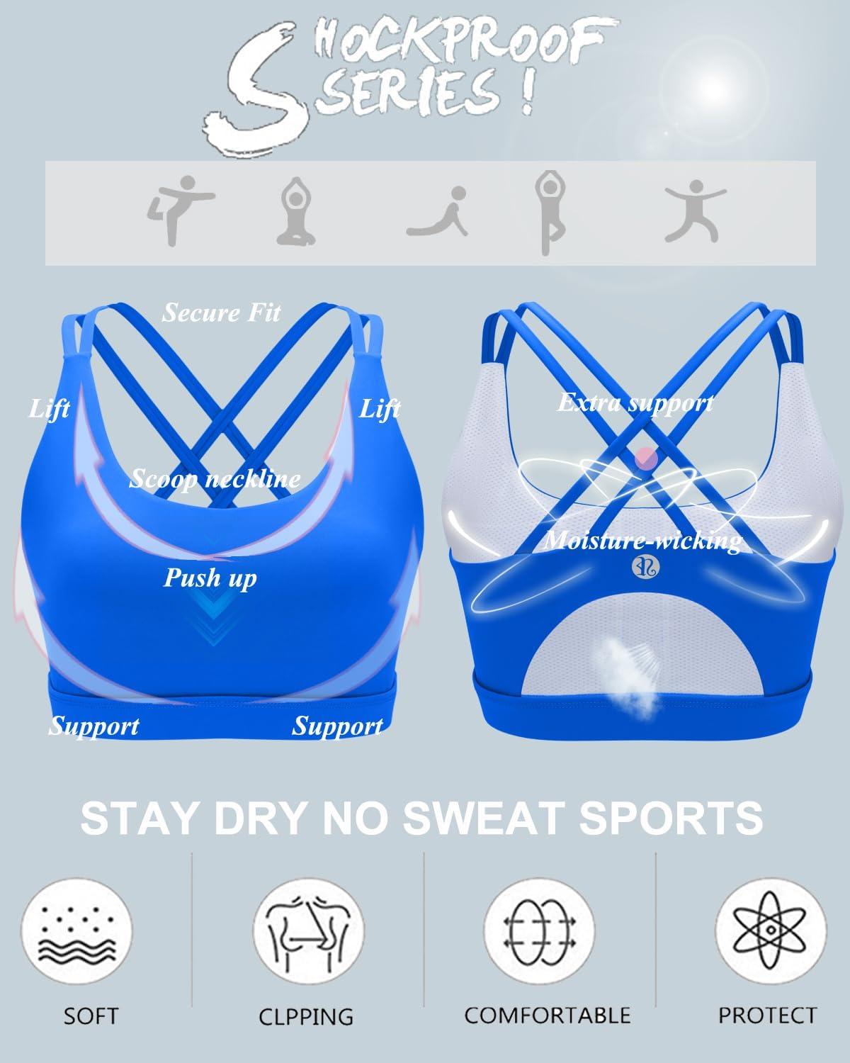 RUNNING GIRL Sports Bras for Women,Padded Sports Bra Tank Top Sexy Crisscross Back High Impact Longline Workout Yoga Bra(Cerulean Blue)