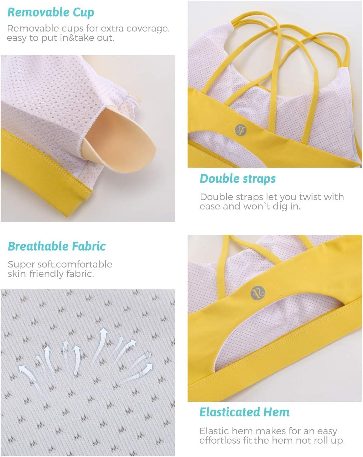 RUNNING GIRL Sports Bras for Women,Padded Sports Bra Tank Top Sexy Crisscross Back High Impact Longline Workout Yoga Bra(Yellow)
