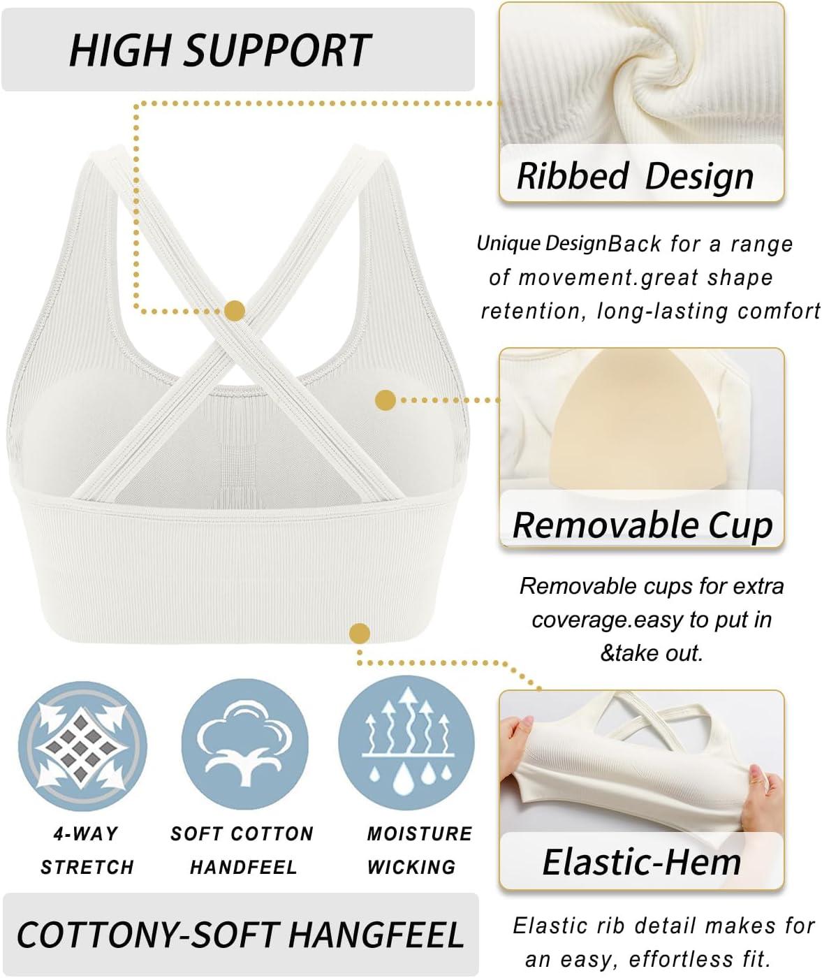 RUNNING GIRL Sports Bras for Women,Seamless Strappy Sports Bra High Support Crisscross Back with Removable Pads(D-white)