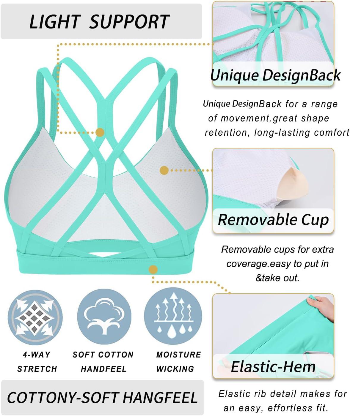 RUNNING GIRL Sports Bras for Women,Strappy Crisscross Back Padded Low Impact Running Sports Bra with Removable Cups(Electric Green)