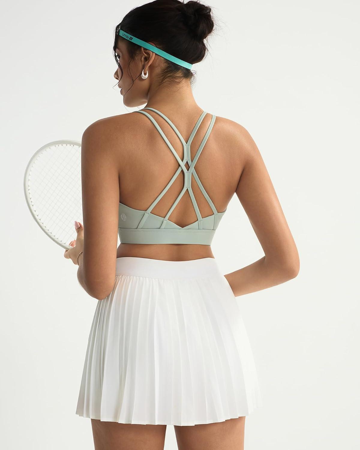 RUNNING GIRL Sports Bras for Women,Strappy Crisscross Back Padded Low Impact Running Sports Bra with Removable Cups(Green)