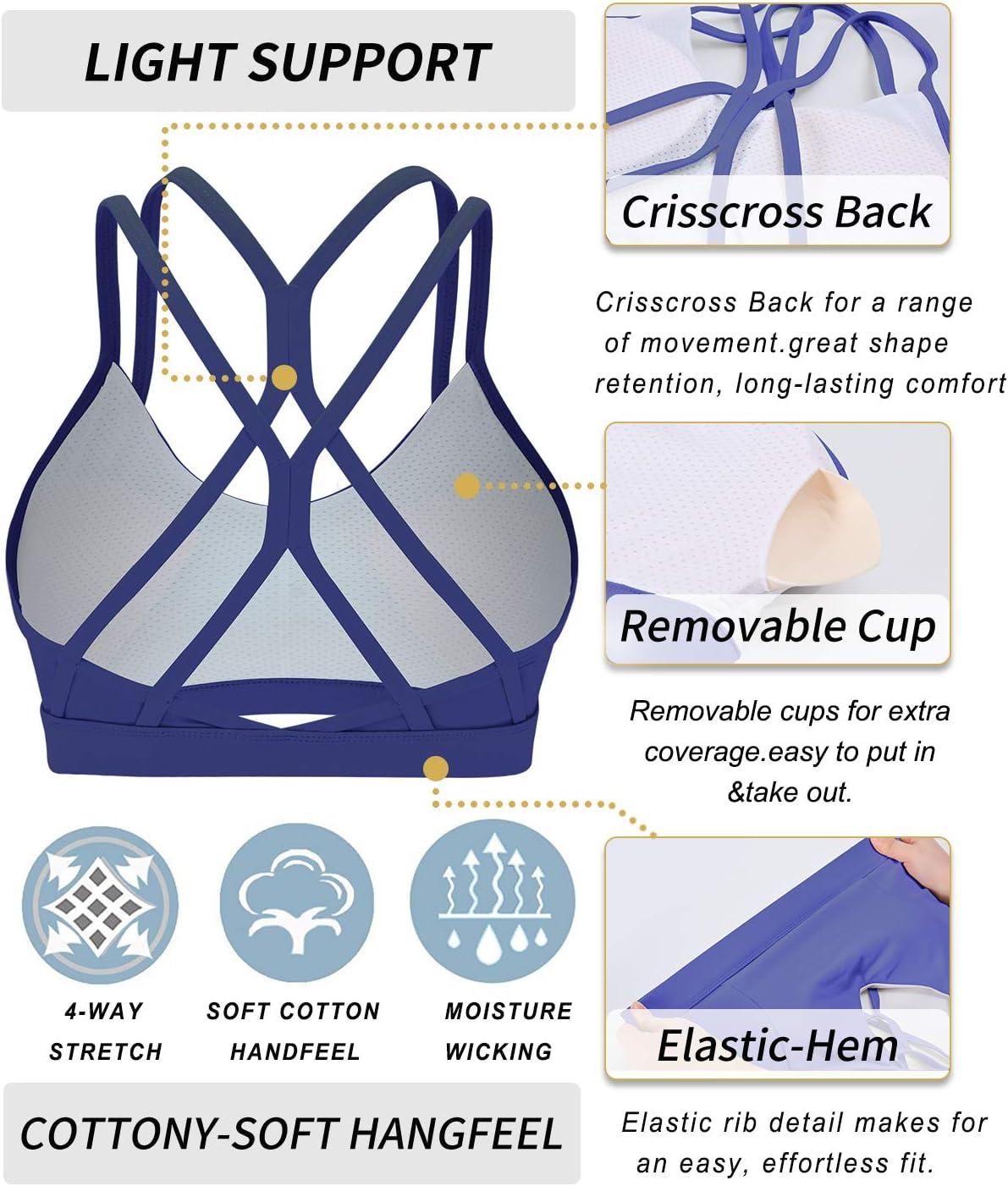 RUNNING GIRL Sports Bras for Women,Strappy Crisscross Back Padded Low Impact Running Sports Bra with Removable Cups(A-navy Blue)