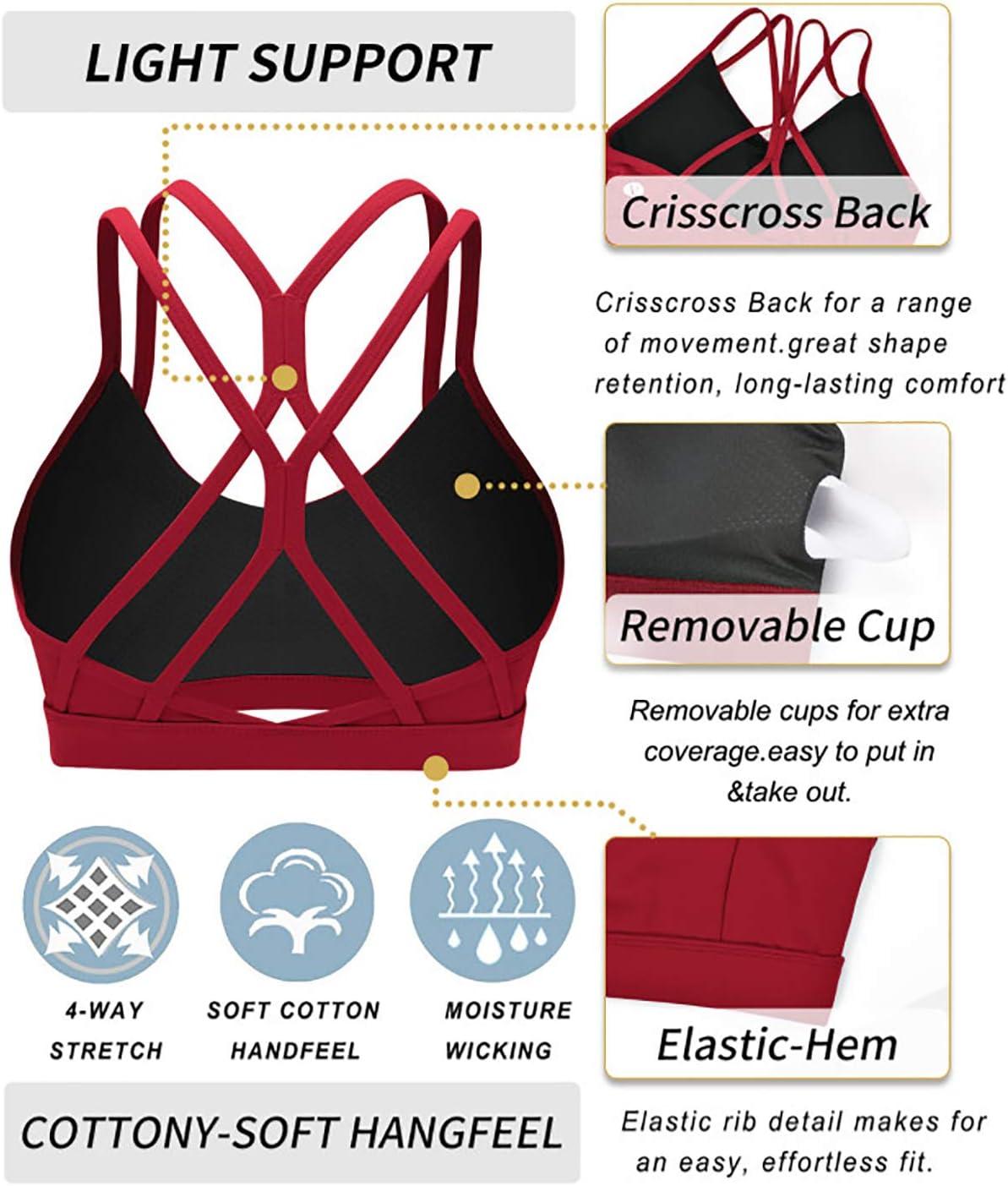 RUNNING GIRL Sports Bras for Women,Strappy Crisscross Back Padded Low Impact Running Sports Bra with Removable Cups(A-rio Red)