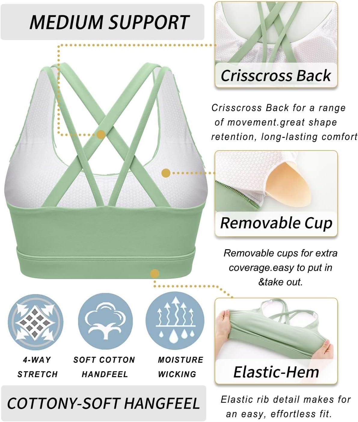 RUNNING GIRL Sports Bras for Women,Strappy Crisscross Back Padded Low Impact Running Sports Bra with Removable Cups(Y-green)