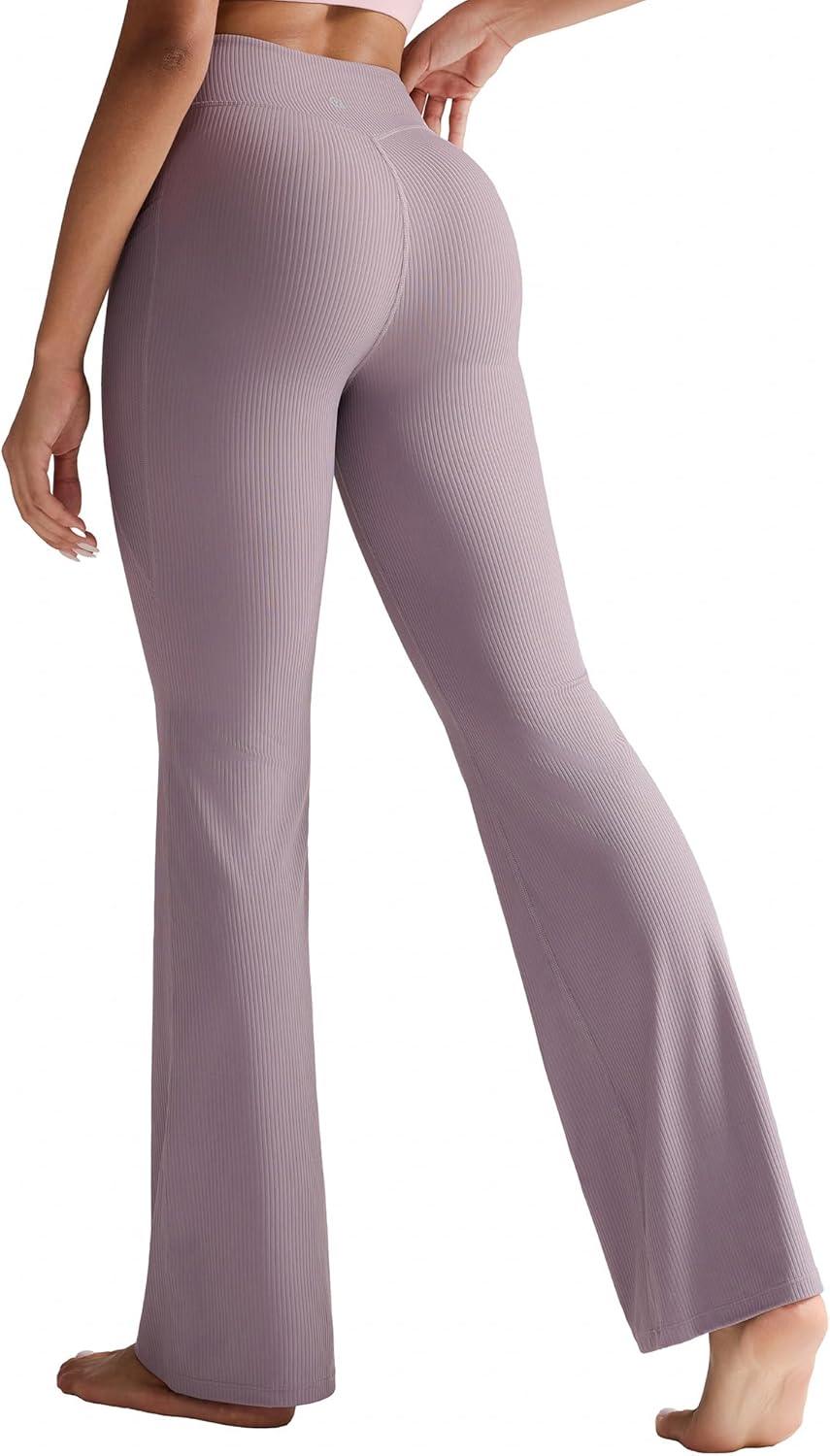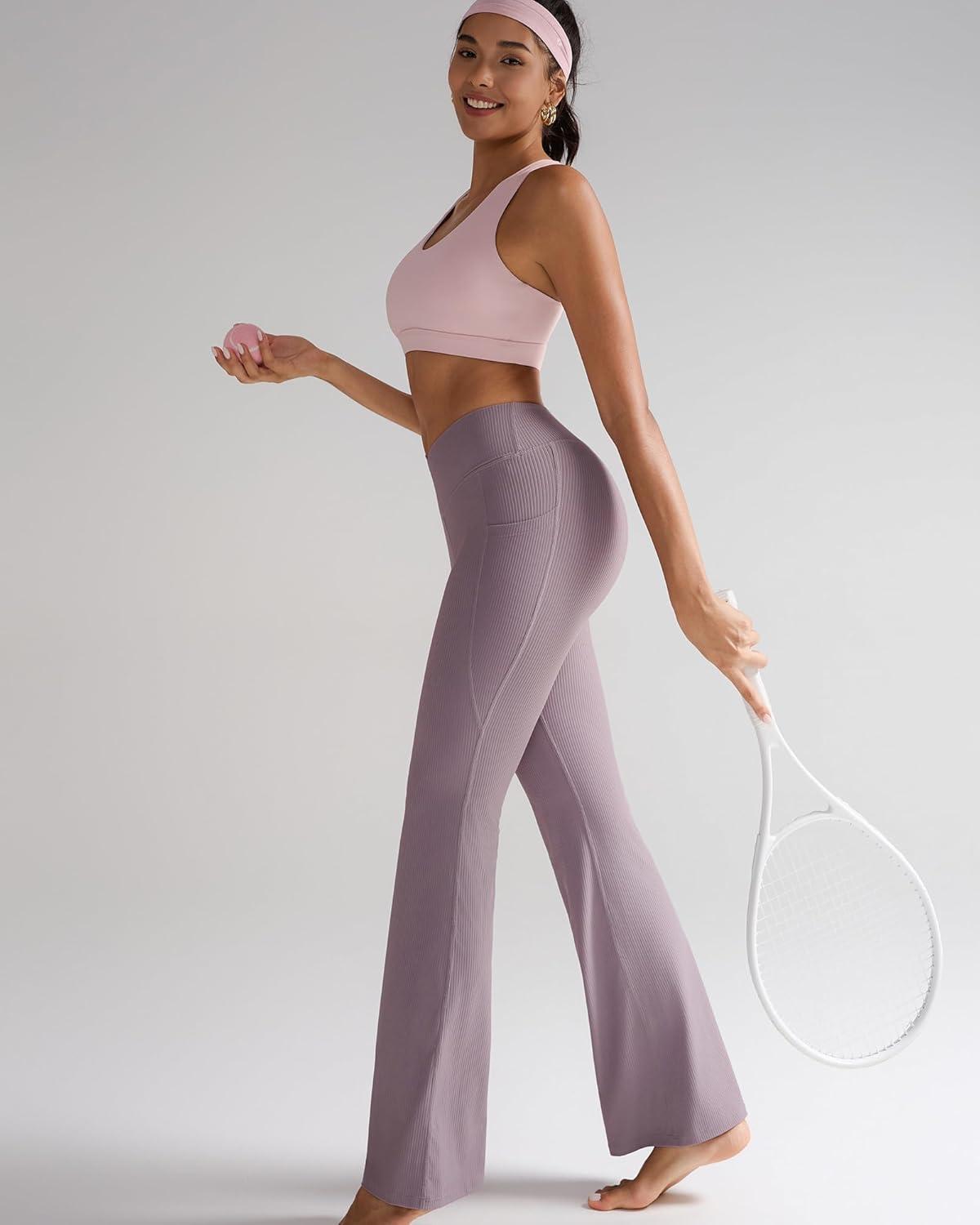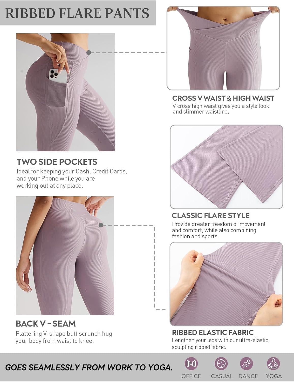 imageRUNNING GIRL Womens Ribbed V Crossover High Waist Yoga Pants Flare Leggings for Women with Side PocketsGrey