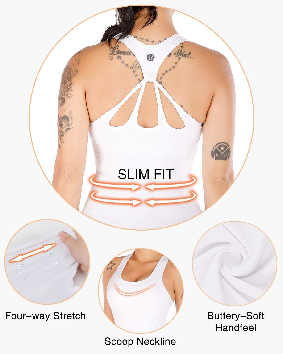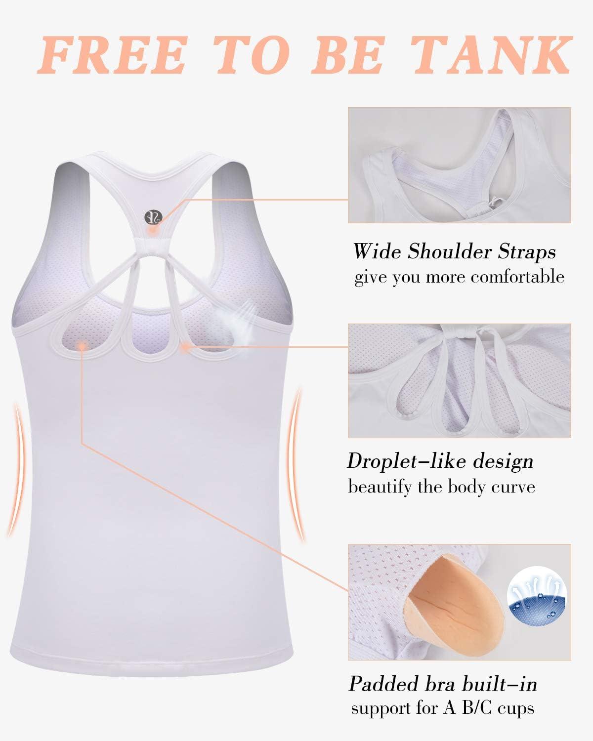 RUNNING GIRL Workout Tank Tops for Women Built in Shelf Bras Padded,Sleeveless Gym Tops Athletic Yoga Shirts(D-white)