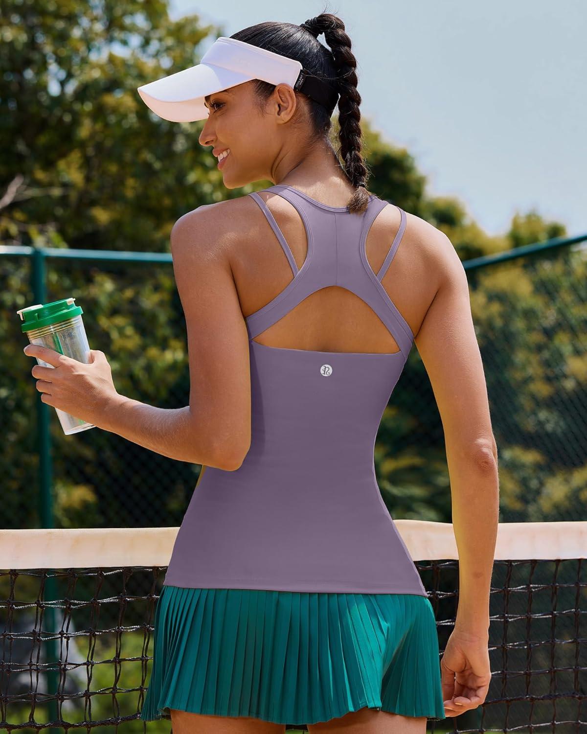 RUNNING GIRL Workout Tank Tops with Built in Bras for Women,Compression Shirt Strappy Back Athletic Yoga Tops(A-deep Purple)