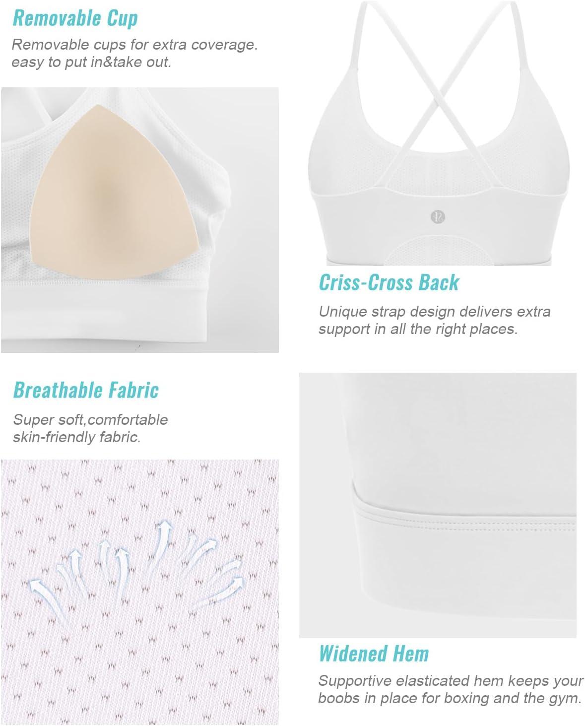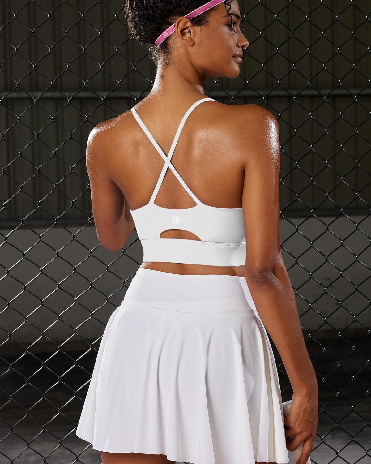 RUNNING GIRL Y-Back Sports Bras for Women, Medium Impact Wirefree Padded Bra Workout Crop Top Longline Sports Bra Push up(F-white)